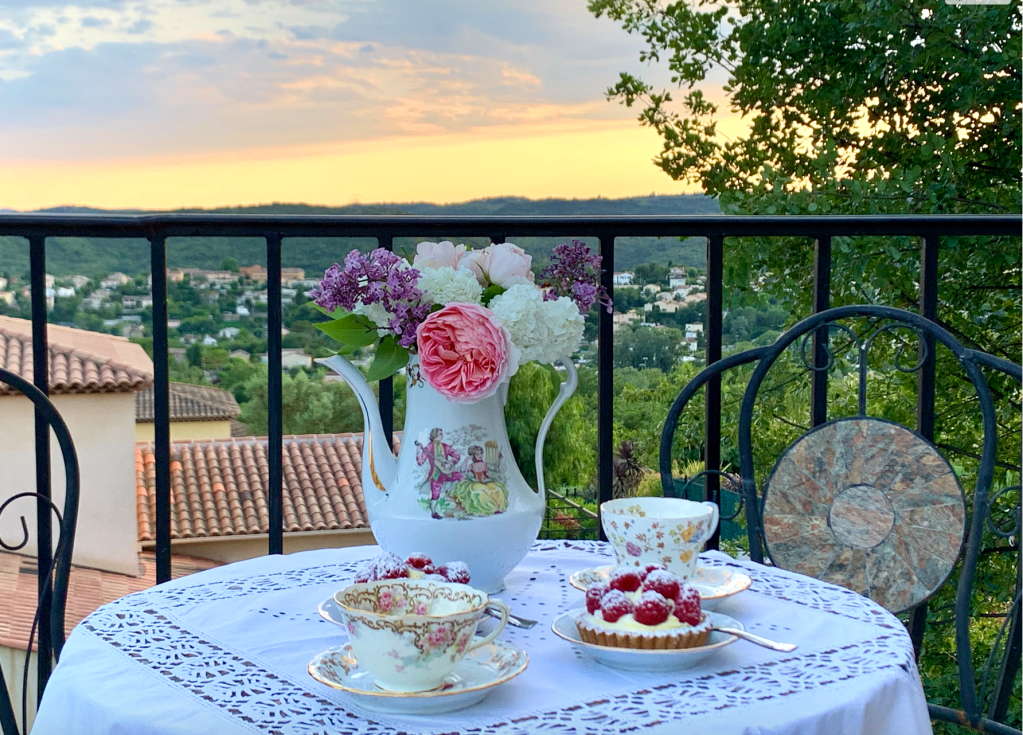 Romantic breakfast on a crystal clear air with the view over La Colle-sur-Loupe